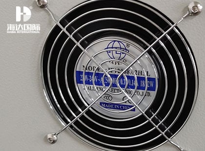 10、測試部分:不銹鋼材質,箱門為兩層5mm厚的鋼化玻璃,可觀察被測試試樣的狀態,后側設計有排風扇,并預留外接排風接口。